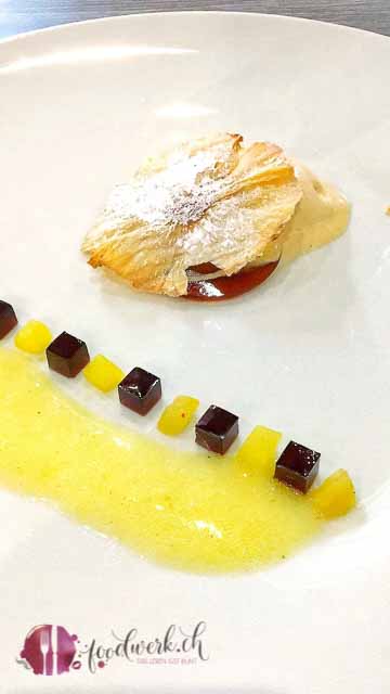 Das Cironéeis mit Rotweinsorbet, Milch und Trauben sorgte definitiv auch für grosse Augen und forderte unsere Geschmacksnerven. Gar nicht so einfach die Lebensmittel in so veränderter Textur zu kategorisieren. Manchmal tut es einfach gut seine Geschmacksknospen wieder zu wecken und ausserhalb des gewohnten Bereiches zu schulen.