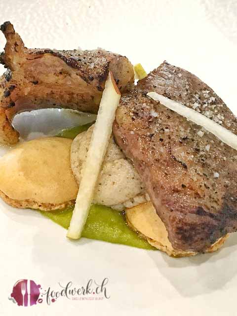 Das Secreto vom Pata Negra Bellota das absolut butterzart war wurde begleitet von Birne, Spargeln und Haselnuss. Überrascht haben uns die süssen Elemente. Was etwas ungewohnt, jedoch sehr passend war.