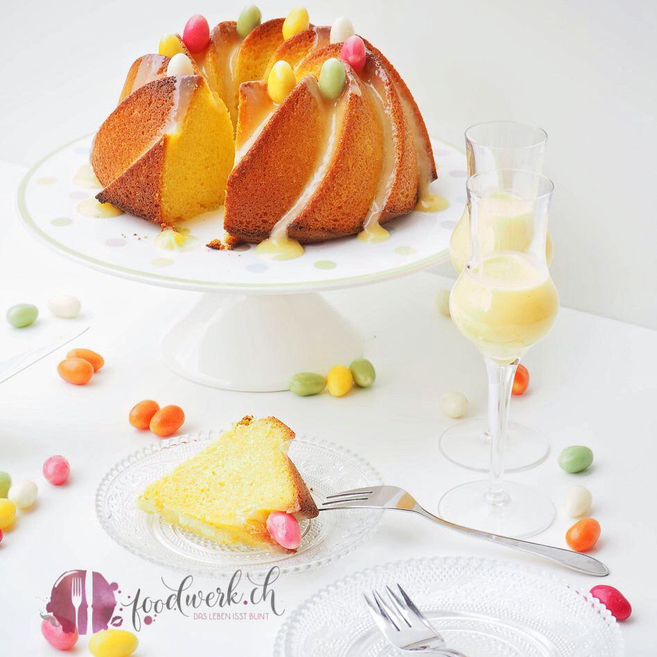 dass ihr auf die Bilder darauf klicken könnt und dann zum entsprechenden Rezept gelangt. Wir haben bereits damit begonnen, doch es nimmt sehr viel Zeit in Anspruch, so dass ihr euch noch etwas gedulden müsst. Wir haben euch heute einen Eierlikörgugelhupf mit Eierlikörglasur mitgebracht. Natürlich passend zu den kommenden Ostertagen. Ehrlich gesagt jedoch, dieser leckere, saftige Gugelhupf geht bei uns das ganze Jahr. Die Deko ist ja variabel, so dass sie dem Anlass entsprechen angepasst werden kann. Eierlikör ist auch nicht an eine Saison gebunden, das passt also herrlich das ganze Jahr.