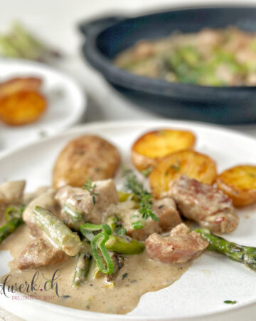Pfeffenbacher Rahmgulasch mit Spargeln