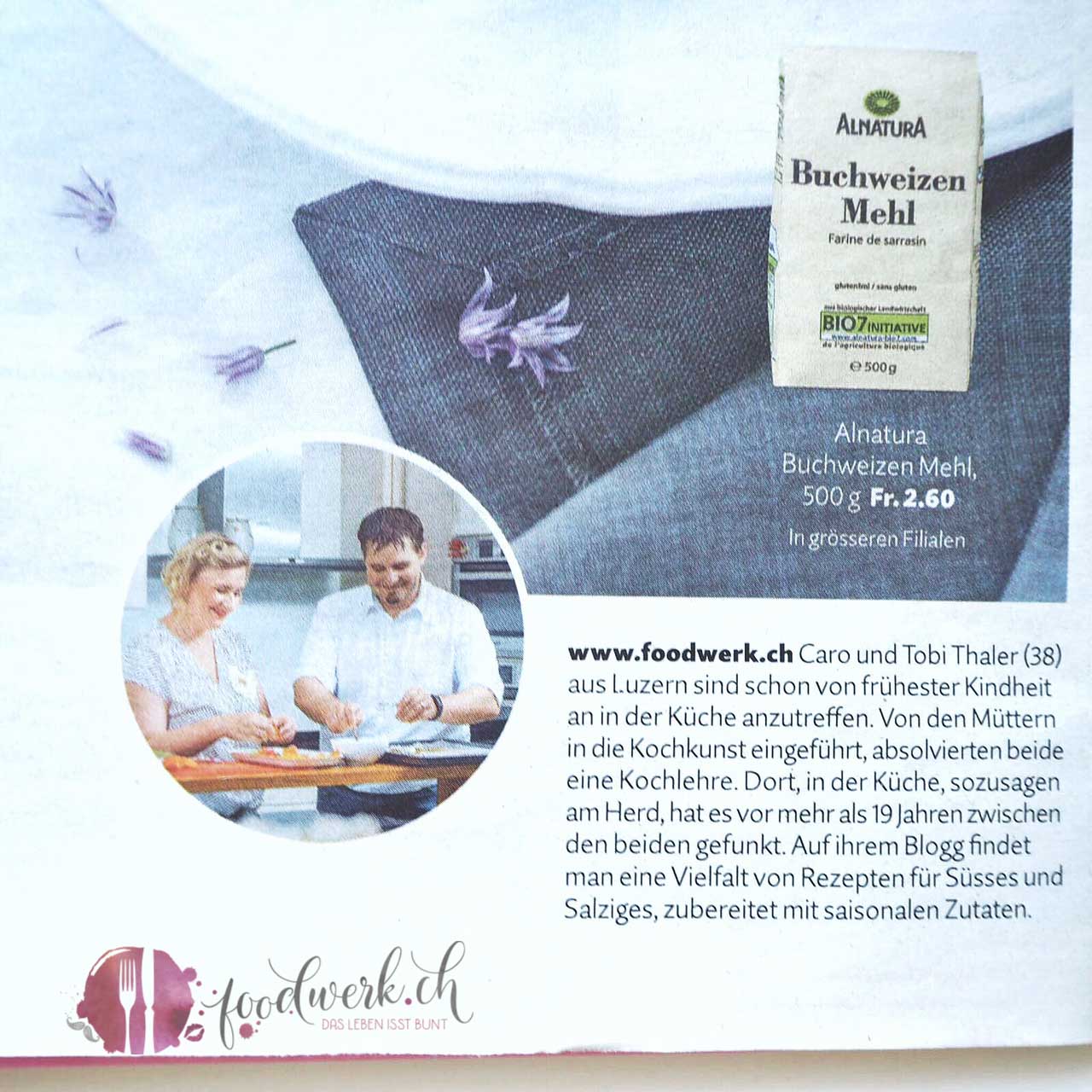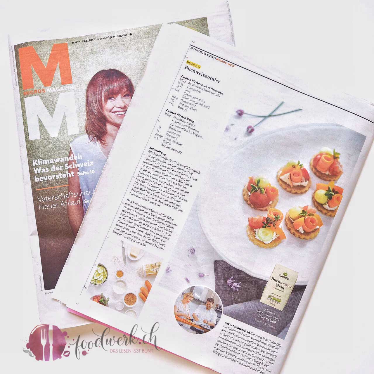 ein Rezept für in die Migroszeitung (Migros Magazin) beisteuern möchten. Nun ist es soweit und gestern ist die Ausgabe mit unserem Rezept erschienen. Ein sommerlich leichter, glutenfreier Buchweizentaler mit viel marktfrischem Gemüse ziert eine ganze Seite.