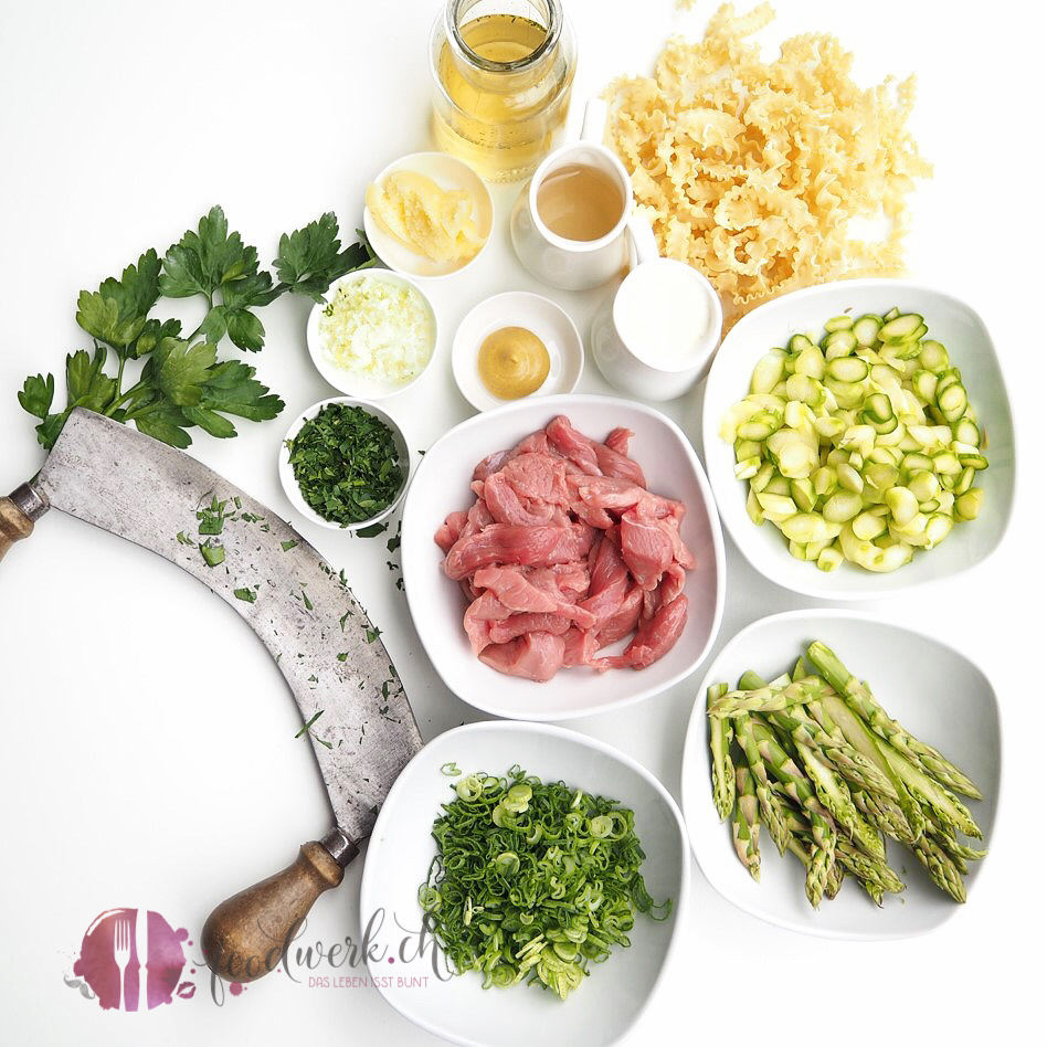 Wie schmeckt bei euch der Frühling? Bei uns nach knackigen Spargeln, frischen Kräutern, aromatischen Morcheln, Rhabarber und vielem mehr. Die Natur zeigt sich von seiner schönsten Seite und in letzter Zeit lachte sogar der Himmel. Bekommt ihr da auch Lust auf frische Küche? Die Spargelsaison in der Schweiz hat bereits vor kurzem begonnen. Dank den herrlichen Temperaturen die uns der diesjährige Frühling bereits beschert hat, sind die Spargeln dieses Jahr etwas früher als auch schon. Wir finden es lohnt sich zu warten bis der heimische Spargel erhältlich ist, da er aromatisch im Geschmack ist, kurze Transportwege hat und die Frische so natürlich kaum zu übertreffen ist. Auch wissen wir gerne woher unser Gemüse oder Fleisch kommt. Unser Spargel in diesem Rezept ist vom Rafzer Spargelhof. Da wir immer etwas im Schuss sind haben wir den gesamten Einkauf online gemacht und uns liefern lassen. So können wir einkaufen wann wir Zeit haben, und etwas voraus planen. Am ausgewählten Datum haben wir die Zutaten dann allesamt bei uns Zuhause, so dass wir uns dafür mehr auf die Vorbereitung für die Gäste konzentrieren können. Was uns an der Lieferung ausserordentlich gut gefallen hat ist, dass das Gemüse in kompostierbaren Säcken geliefert wurde, und die Kühlakkus dem Lieferant zurückgegeben