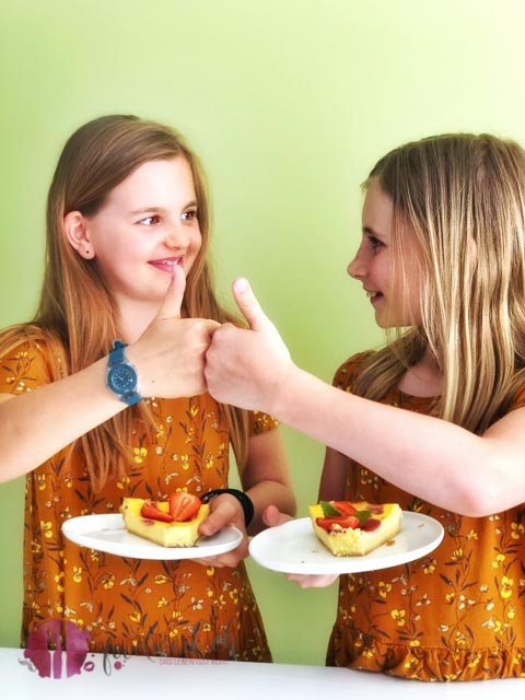 Den Kuchen aus dem Ofen nehmen und gut auskühlen lassen. Falls ihr mögt mit weitern Erdbeeren verzieren und dann einfach nur geniessen! Mmmmmh sowas von lecker! Nun hoffen wir dass euch dieses einfache Rezept auch so gut gefällt und schmeckt wie uns! Über ein Feedback freuen wir uns! Tschüss und bis bald eure Liv und Marsa!