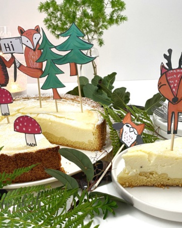 Zitronige Quarktorte (Käsekuchen) mit Waldtierdeko zum ausdrucken