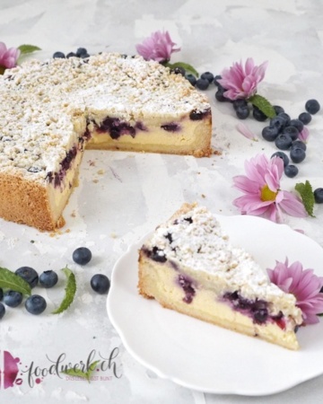 Bester Käsekuchen : Omas gebackene Quarktorte mit Blaubeeren und Streuseln