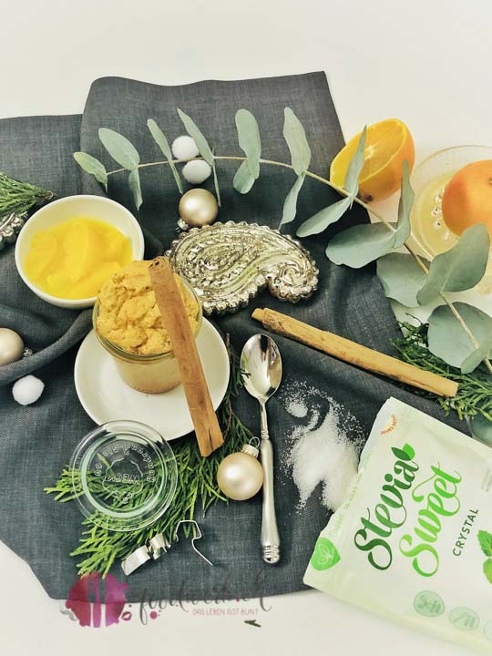 Um die Kalorien zu reduzieren, haben wir uns für ein alternatives Süssmittel anstelle Zucker entschieden. Wir waren ja letztens an einem Backevent bei Meta Hiltebrand und haben dabei mit SteviaSweet gebacken. Also warum nicht gleich das Dessert damit süssen? Das praktische an diesem rein pflanzlichen Süssungsmittel ist, dass es doppelt so süss wie Zucker ist aber trotzdem 0 Kalorien besitzt. Ein Teelöffel SteviaSweet entspricht zwei Teelöffeln Zucker. Also statt zum Beispiel 100 g Zucker, wird nur gerade 50 g SteviaSweet benötigt. Schon die Ureinwohner Südamerikas wussten die Vorzüge dieser Pflanze zu schätzen und süssten damit ihre Getränke und Speisen. Anders als Zucker schont es die Zähne uns lässt den Blutzuckerspiegel nicht ansteigen.