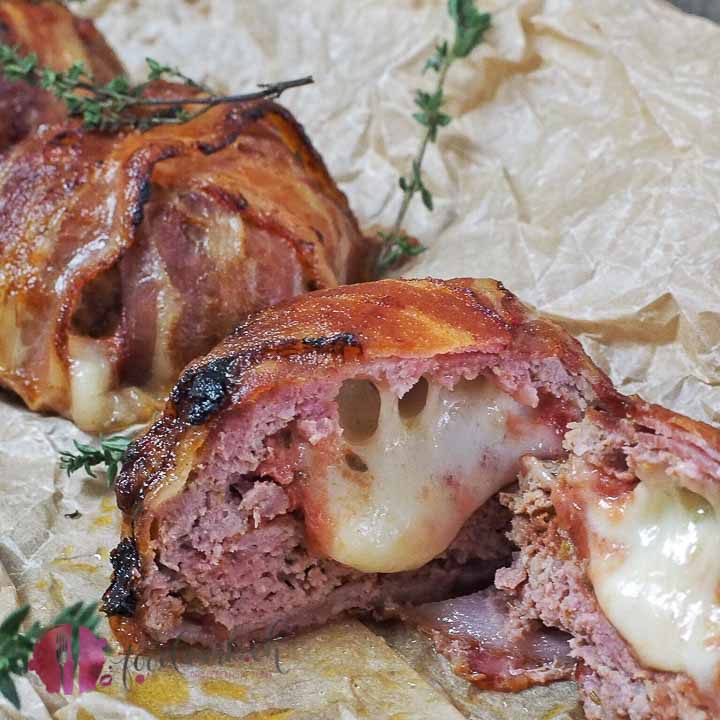 Versprochen ist versprochen! Wir haben euch gefragt ob ihr euch weitere einfache und schnelle Hackfleischprezepte wünscht von uns. Der Tenor war eindeutig, und darum hier ein weiteres familienfreundliches Rezept. Kombiniert mit Gemüse oder Salat ist auch dieses Gericht wieder low carb. Wir finden unsere gefüllten Hackfleischbomben durchaus gästetauglich da man sie gut vorbereiten kann, und dies sogar schon am Vortag wenn man möchte.