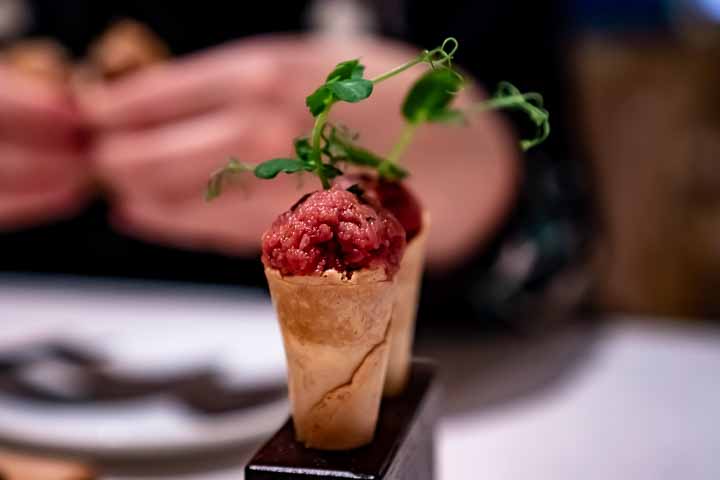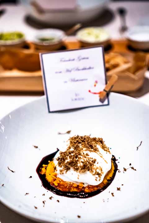 Als nächstes huldigte Chef Beer den AOP Alpchäs, in dem er 3 Jahrgänge desselben Käses servierte. Der Käse stammt vom Feuzes Bärgli’. Der Alpkäser Roland Feuzes und seine Familie betreiben die Käserei auf 1650 m.ü.M. und verbringen dort 100 Tage zusammen mit 28 Kühe, 2 Jungtiere und 5 Alpschweine. Ist das nicht idyllisch?