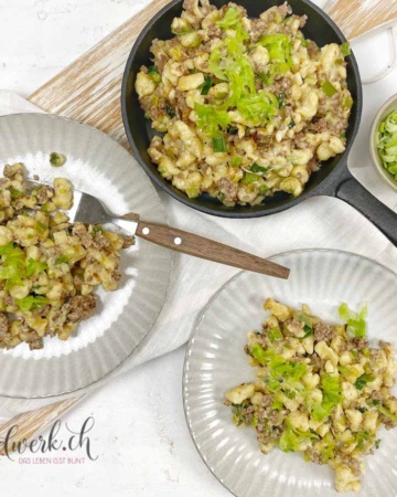 Schnelle Spätzli Pfanne mit Hackfleisch und Lauch