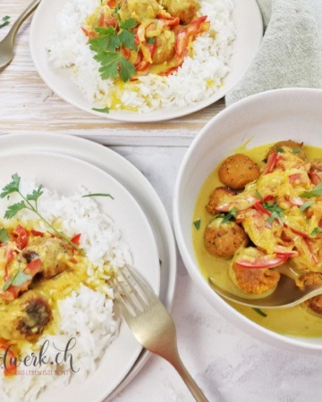 Linsenbällchen an einer leichten Currysauce (vegan)