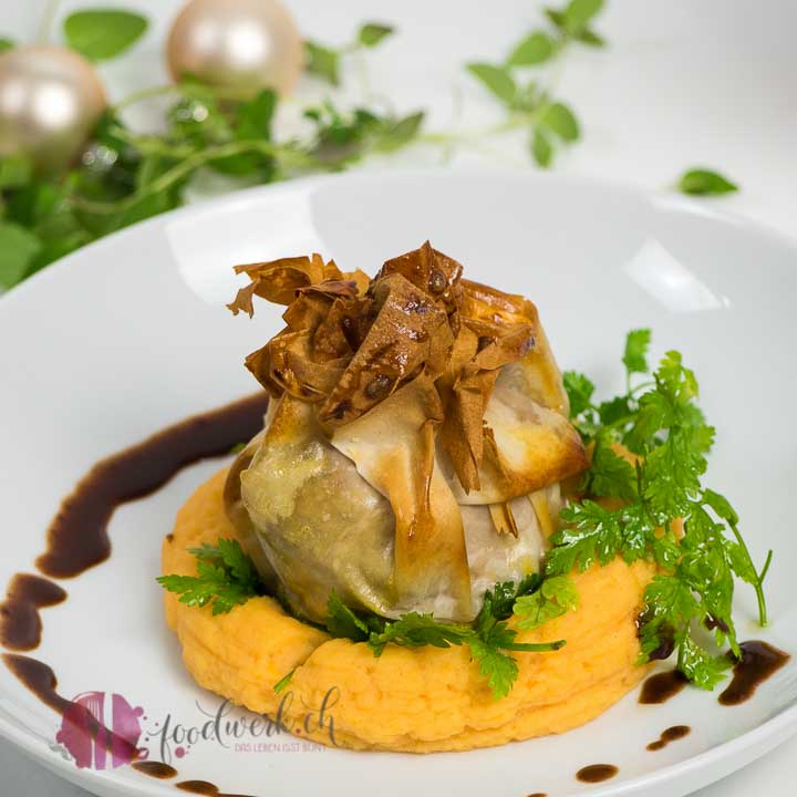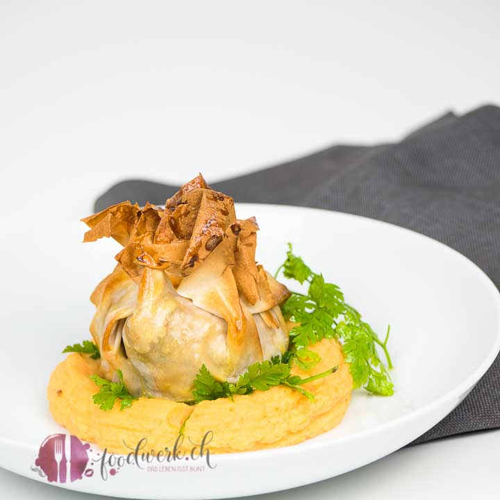 Heute haben wir uns auch für ein Schweinefilet im Teig entschieden, wir habe es jedoch im Strudelteig gemacht. Und jaaaah, auch diesen könnte man selbst herstellen, doch mit dem gekauften sieht es einfach schöner aus bei uns, da dieser so richtig schön wilde Päckli gibt und super einfach in der Anwendung ist. Wir haben dazu Süsskartoffelpüree serviert, aber in der Beilage seid ihr natürlich total frei.
