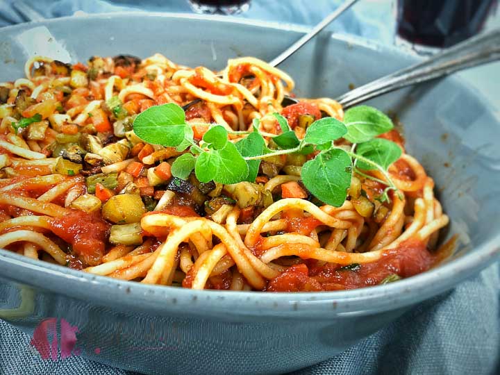 Die Tomatensauce wurde ursprünglich nicht zu Pasta serviert, sondern eher als Beilage zu verschiedenen Gerichten. Heute ist sie als Sauce zu Teigwaren kaum mehr wegzudenken. Daher haben wir euch heute ein Tomatensaucen Rezept dass wir mit Röstgemüsen angereichert haben. Durch das anrösten der Wurzelgemüse, entsteht ein angenehmer leicht süsslicher Geschmack was richtig toll zur Tomatensauce passt. Vermischt mit den Garofalo Spaghetti, schweifen unsere Erinnerungen sofort ab in die lauen Sommernächte in Italien.