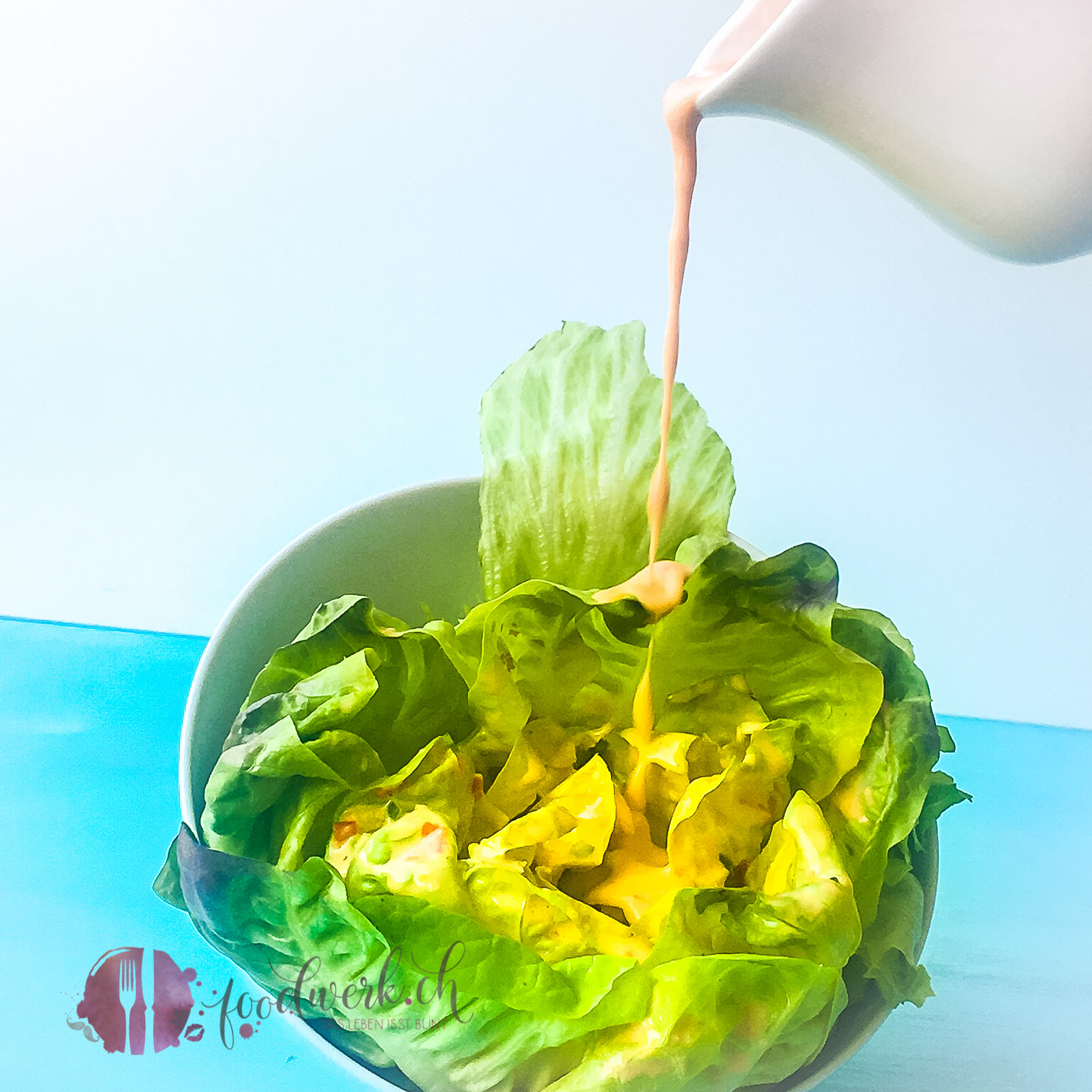 Salat steht im Hause foodwerk.ch täglich auf dem Tisch. Und wie ihr ja bereits wisst gibt es schon einige Salatsaucen in unserer Rezeptedatei (French, Italienne-, Avocado– und Pinienkerndressing). Wir produzieren unsere Dressing immer auf Vorrat, dann müssen wir nicht täglich Neues machen und sparen so auch viel Zeit. Meist haben wir so zwei bis drei unserer Dressings im Kühlschrank, so ist Abwechslung garantiert. Oft machen wir auch ein Thousand Island Dressing welches farblich einfach toll aussieht. Doch dieses Rezept, so haben wir bemerkt, haben wir euch