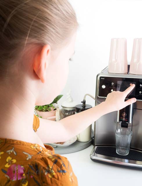 Bei uns ist vor einiger Zeit eine Kaffeemaschine auf Zeit eingezogen. Tobi liebäugelt nämlich schon lange mit einem Vollautomat. Ok, eingezogen bei uns ist nicht nur irgend ein Vollautomat, sonder DER Vollautomat. Sozusagen eine Maschine für die ganze Familie. Die neue Saeco Xelsis verfügt nämlich über Programme für die ganze Familie und lässt sich ganz einfach programmieren. So hat auch Liv ihr eigenes Profil wo sie den ihr so geliebten Milchschaum rauslassen kann. Nicht jeder mag den Kaffee gleich stark, und so kann sich jeder seine Stärke, Füllmenge und Favoriten auf sein eigenes Profil speichern. So muss nicht bei jedem Kaffee erneut an den Einstellungen gewerkelt werden. Auch der seperate Milchtank ist ein grosses Plus der Maschine. Nach jedem Gebrauch stösst sie von selbst die restliche Milch aus dem Schlauch, was die Reinigung der Maschine sehr einfach macht. Sozusagen ein Familienmitglied das mithilft den Alltag so stressfrei wie möglich zu gestalten. Einen absolut kleinen Minuspunkt haben wir für uns als gewohnte Kapselkaffeetrinker trotzdem gefunden. Bei der Wahl der Kaffeesorte kann man nicht täglich variieren, wie bei den Kapseln. Aber wir denken dass ist Gewohnheitssache.